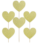 Toppery dekoracje do muffinek złote serca brokatowe 6szt