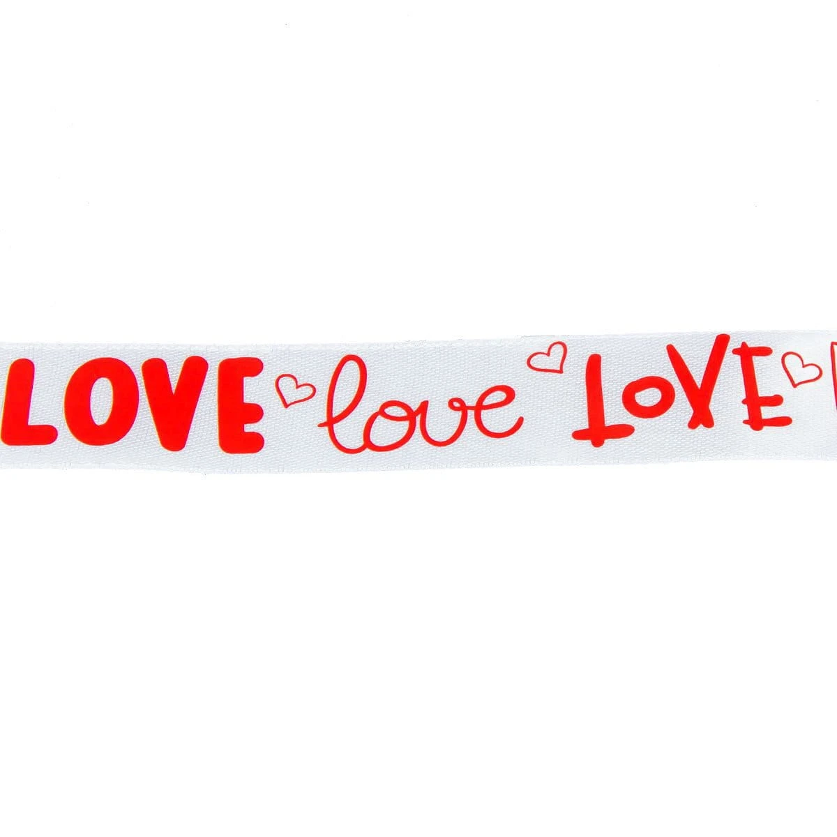 Wstążka satynowa biała 25mm napis LOVE 01 white