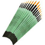 Zestaw 17 nylonowych, okrągłych pędzli firmy Renesans. Wykonane z najwyższej jakości materiałów - złotego, syntetycznego włosia oraz drewna, pomalowanego zieloną farbą z wyjątkowym oznaczeniem marki. Idealnie sprawdzą się do nakładania farb (olejnych, akrylowych, akwarelowych) i mediów. Nie pozostawiają smug.