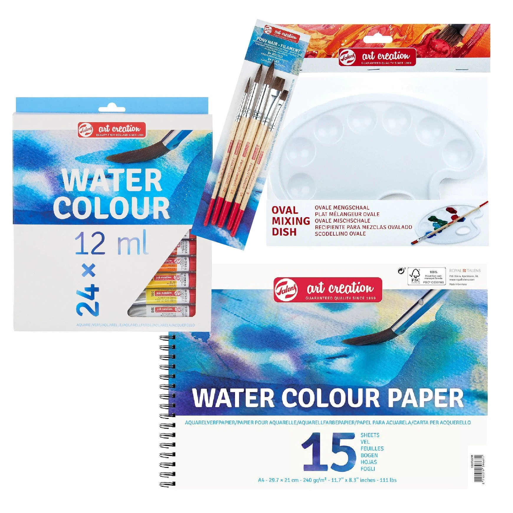 Farby akwarelowe Art Creation 24x12ml Talens + pędzle paletka i blok