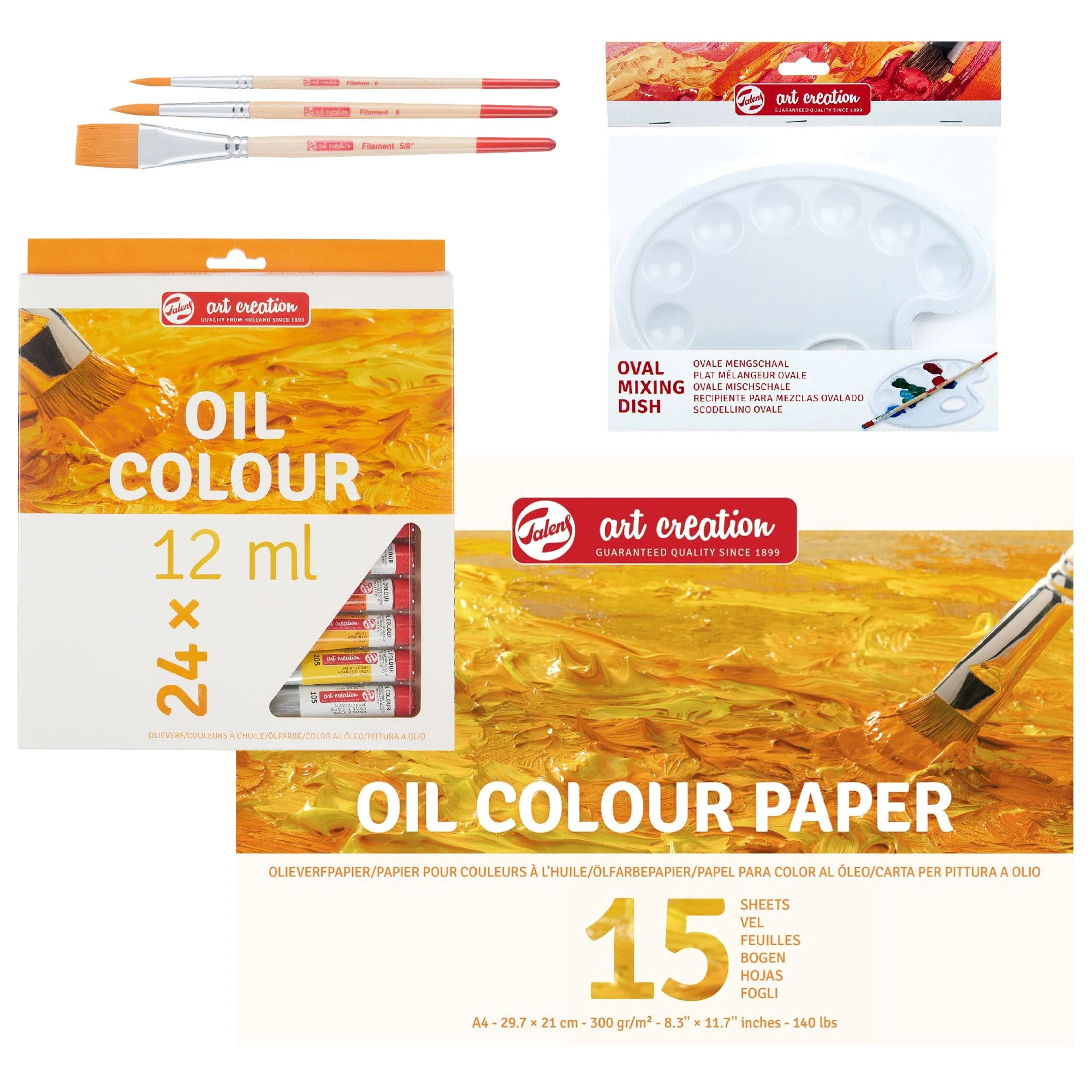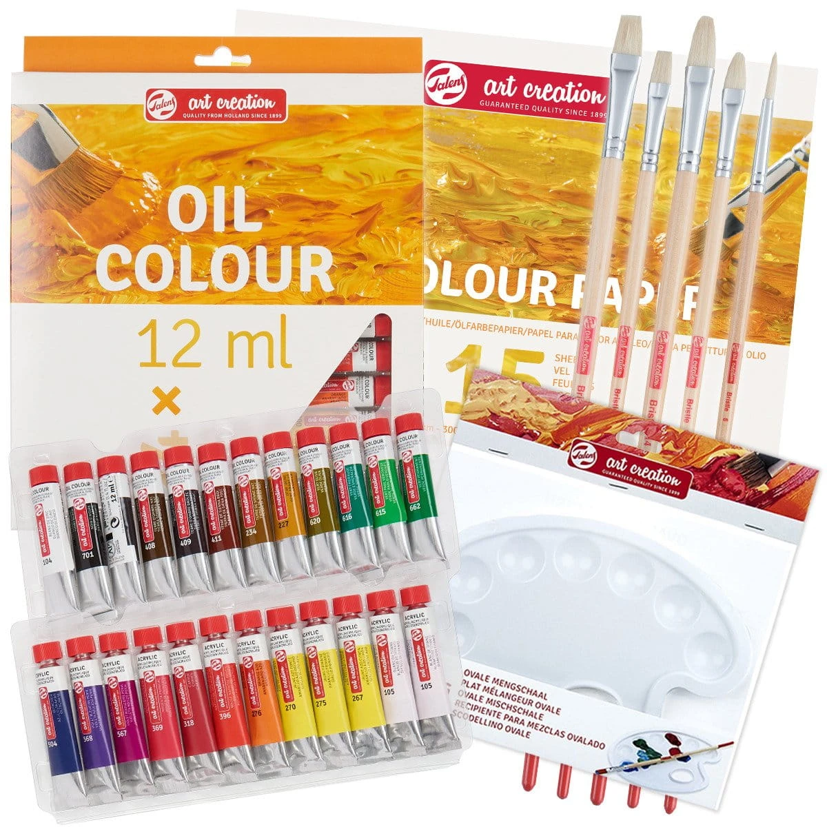 Zestaw farb olejnych Talens 24x12 ml + pędzle paletka i blok