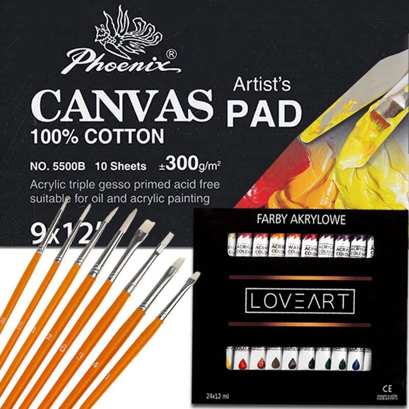ZESTAW idealnie sprawdzi się dla osób dopiero rozpoczynających swoją przygodę z malarstwem, jak również dla tych już wprawionych.