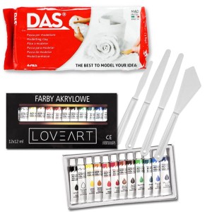 Zestaw szkolny / plastyczny - Glina , farby, narzędzia rzeźbiarskie