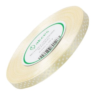 Wstążka satynowa w kropki kremowa 6mm - 22m