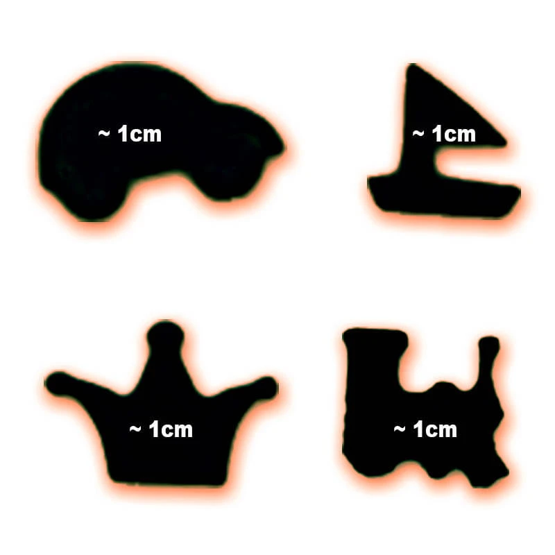 Zestaw zawiera cztery dziurkacze ozdobne z różnymi wzorami: Korona, Lokomotywa, Auto, Łódka. Te dziurkacze tworzą małe wycięcia w kształcie odpowiednich projektów, umożliwiając dodawanie skomplikowanych szczegółów i ozdób do projektów papierowych.