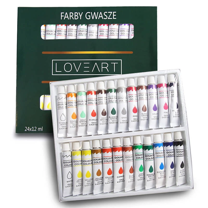 Farby gwasze LOVEART Gouache 24x12ml - Zestaw 24 kompletów