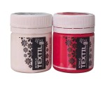 Zestaw Farb akrylowych do tkanin w którym zamieszczone są farby w kolorze białym i czerwonym o wysokiej pigmentacji. Przeznaczone są do malowania na jasnych jak i ciemnych tkaninach, takich jak bawełna, skóra, czy zamsz. Posiadają bardzo dobre krycie, dzięki czemu nadają się także do typowo artystycznego malarstwa tkaninowego. Kremowa konsystencja i odpowiednia kompozycja składników sprawiają, że farby świetnie radzą sobie na tkaninach elastycznych. Aby utrwalić farbę, należy prasować tkaninę przez 5 minut. Jeżeli prasowanie jest niemożliwe można wstawić do piekarnika na 20 minut do temperatury 120 C. Po utrwalaniu odczekać 48 godzin przed ewentualnym praniem.